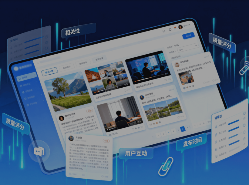 融合视频底层特征、运动特征、美学特征与语义特征构建全面特征集合,在微帧自建数据集上实现 PLCC 0.9328、SRCC 0.9368 的行业领先水平。