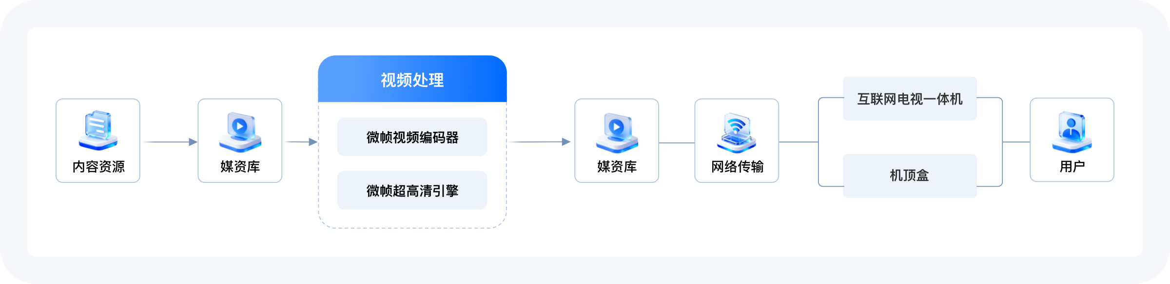 电视 OTT 作为家庭娱乐核心入口,覆盖多元场景:影视点播需 4K/8K 超高清与 HDR,体育直播需实时稳定画质,平台还面临存量庞大、版权保护等挑战。微帧针对电视OTT全链路需求,整合核心技术与扩展能力形成专属解决方案,从内容转码、分发、播放、运营、安全全流程助力客户提升用户体验与商业价值。